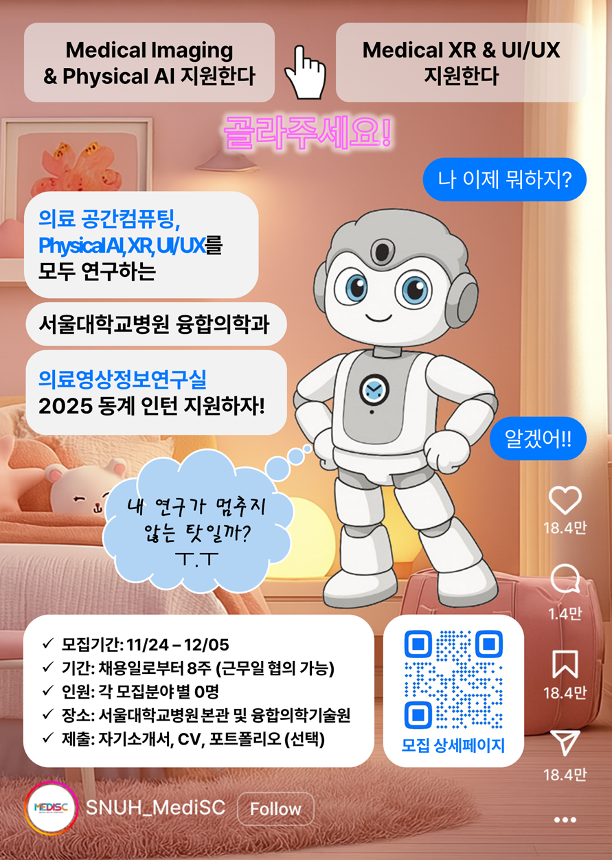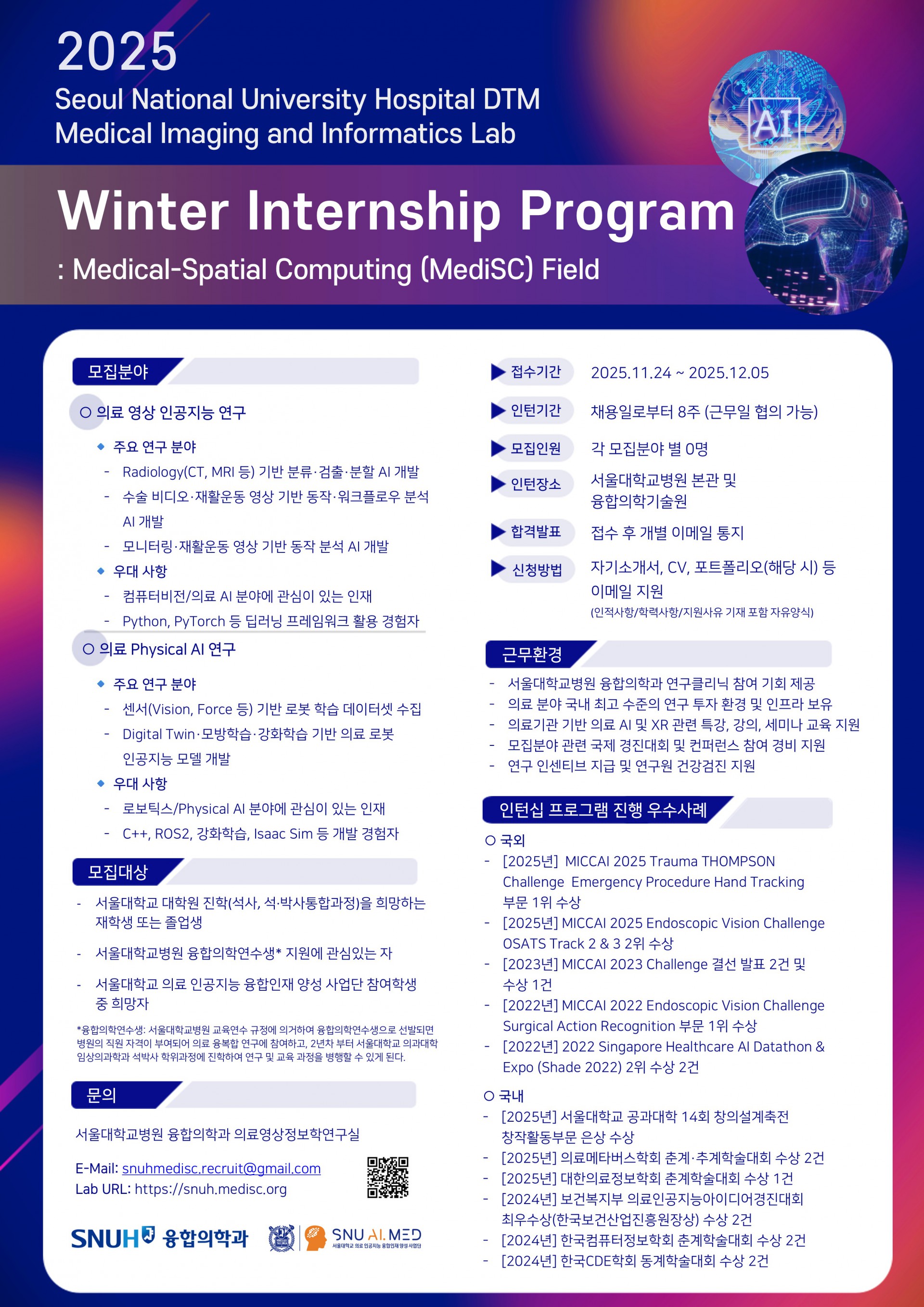 서울대학교병원 융합의학기술원 MediSC 동계 인턴십 프로그램 모집