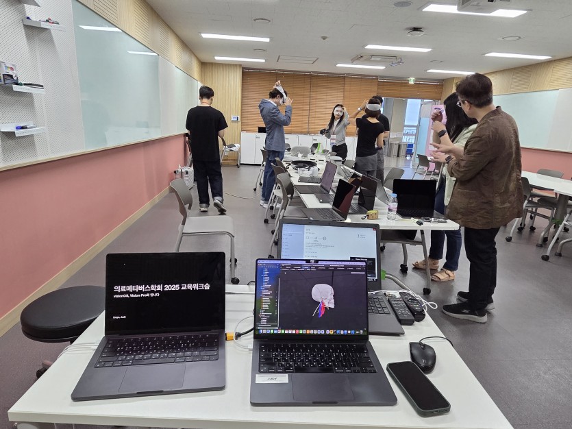 - 내용 : 의료메타버스학회 2025 추계학술대회 교육 워크숍의 일환으로, 애플디벨로퍼 아카데미와 함께 Apple VisionPro HMD 기반 의학 애플리케이션 개발을 위한 핸즈온 교육 프로그램을 사전 기획하고, 현장 실습 교육에 보조 강사로서 진행에 참여함.